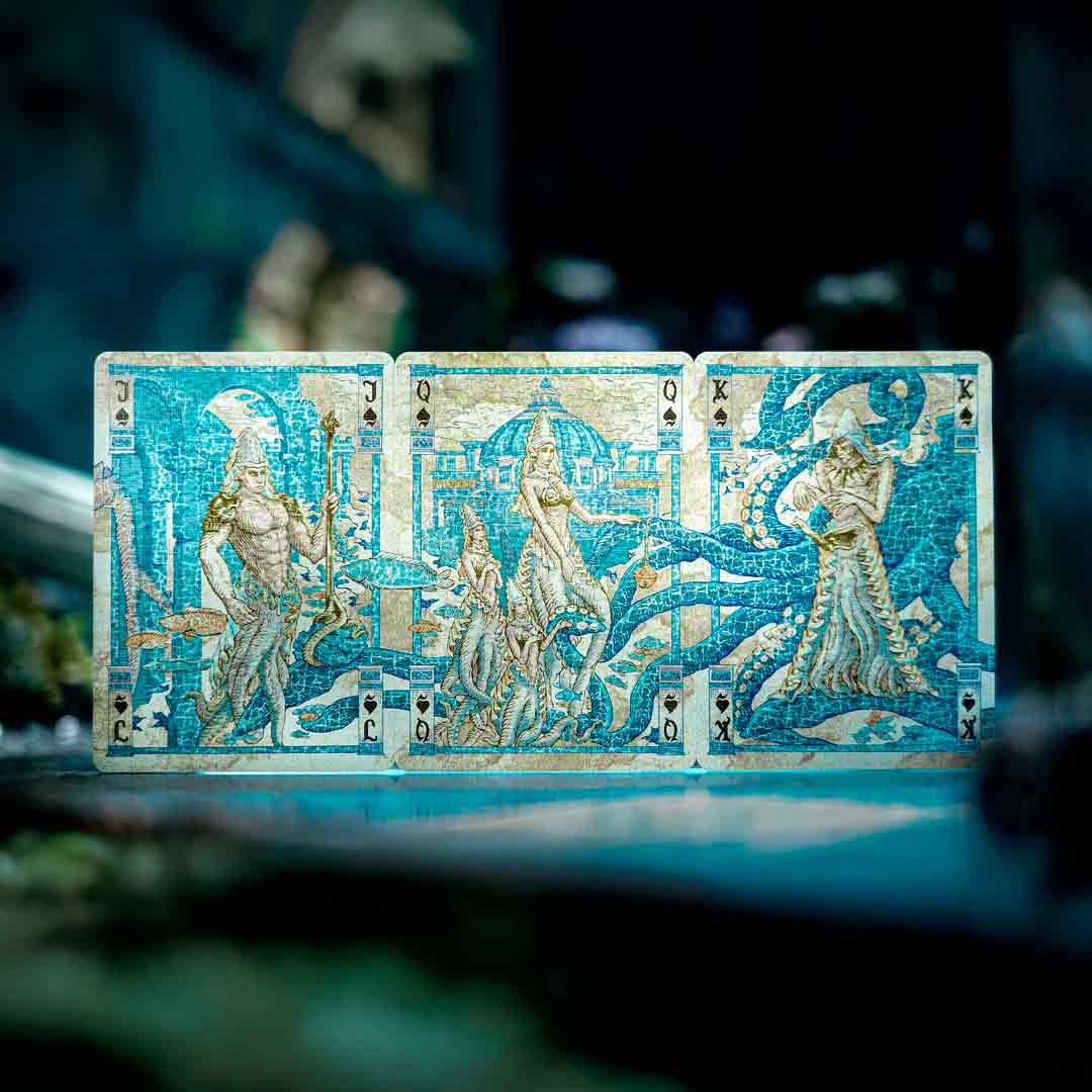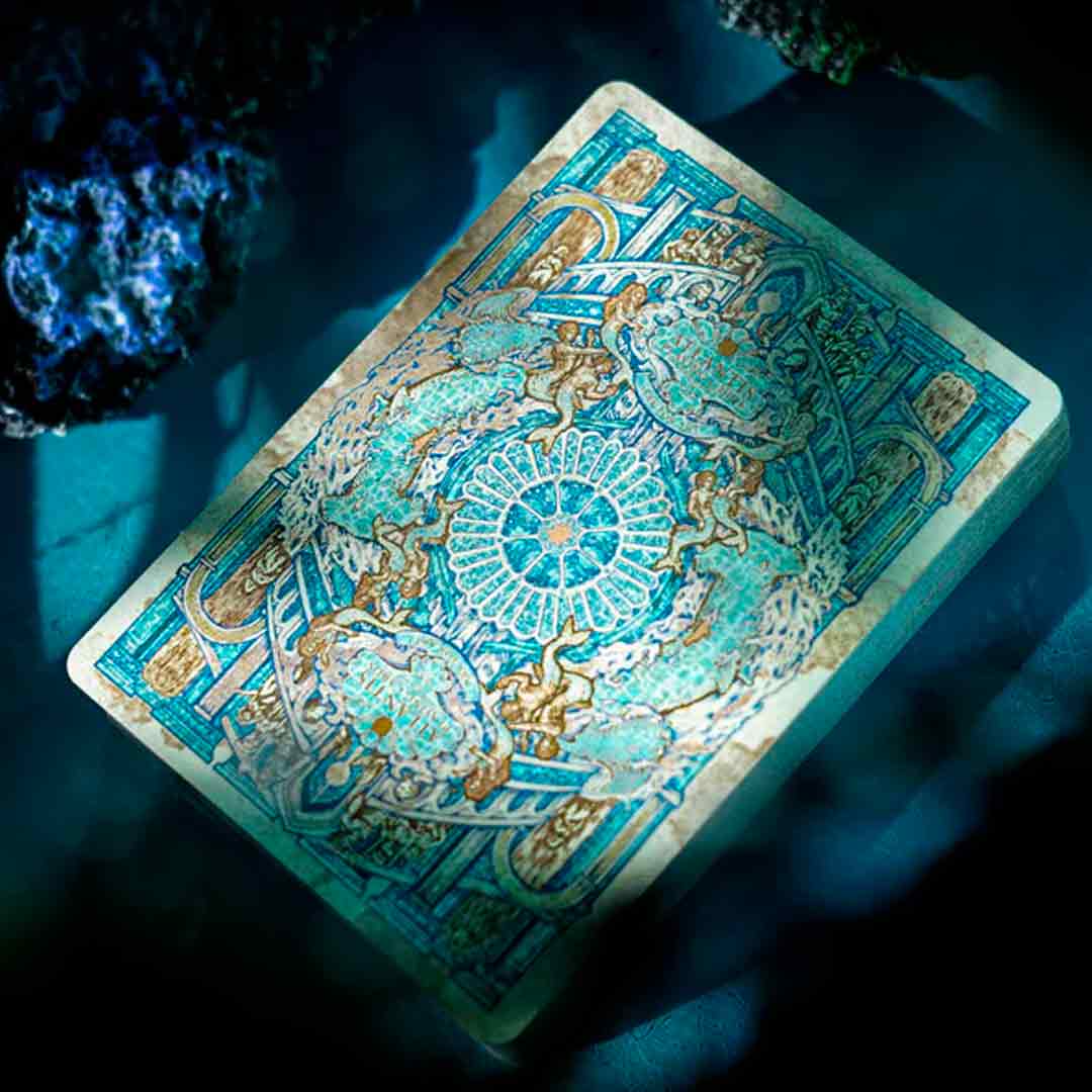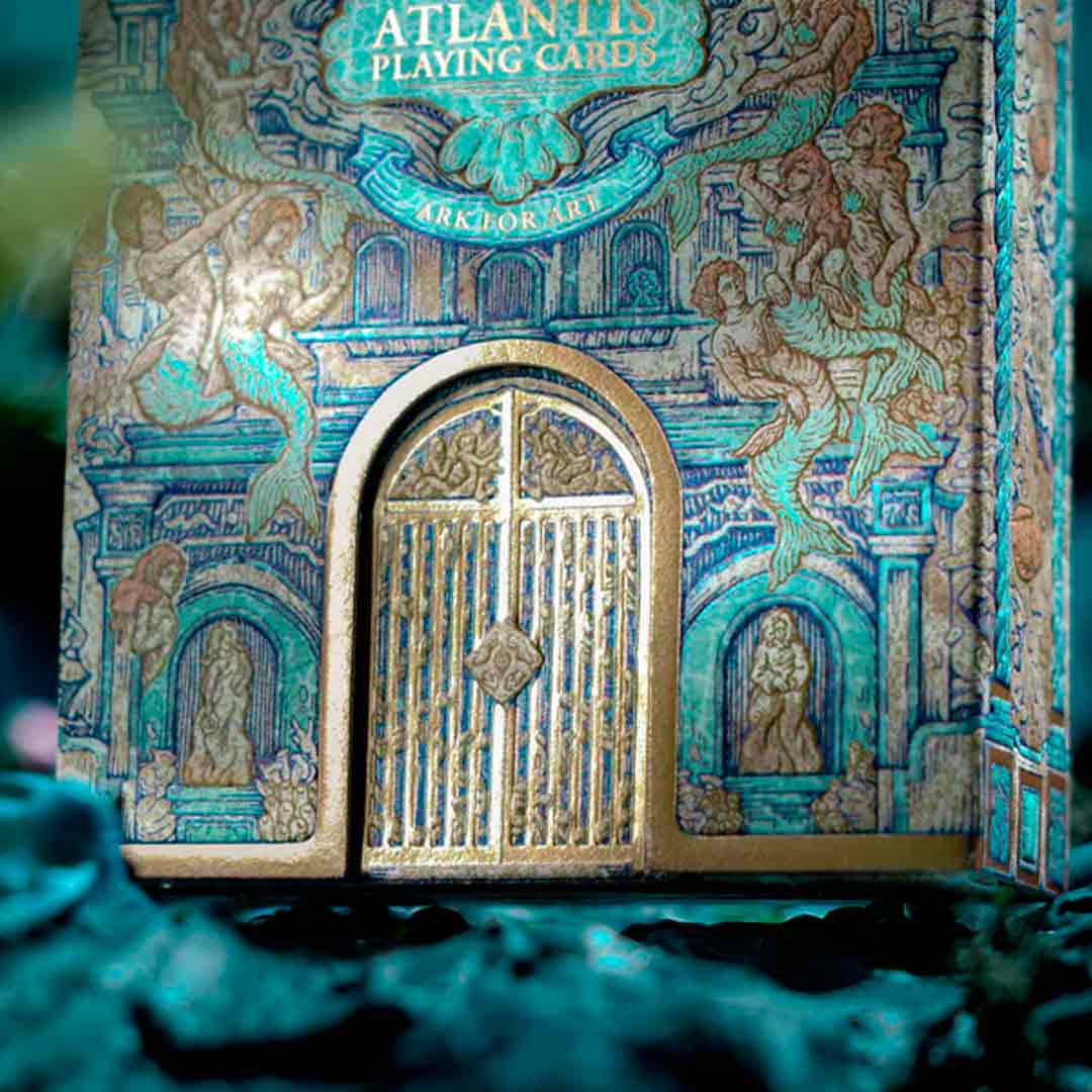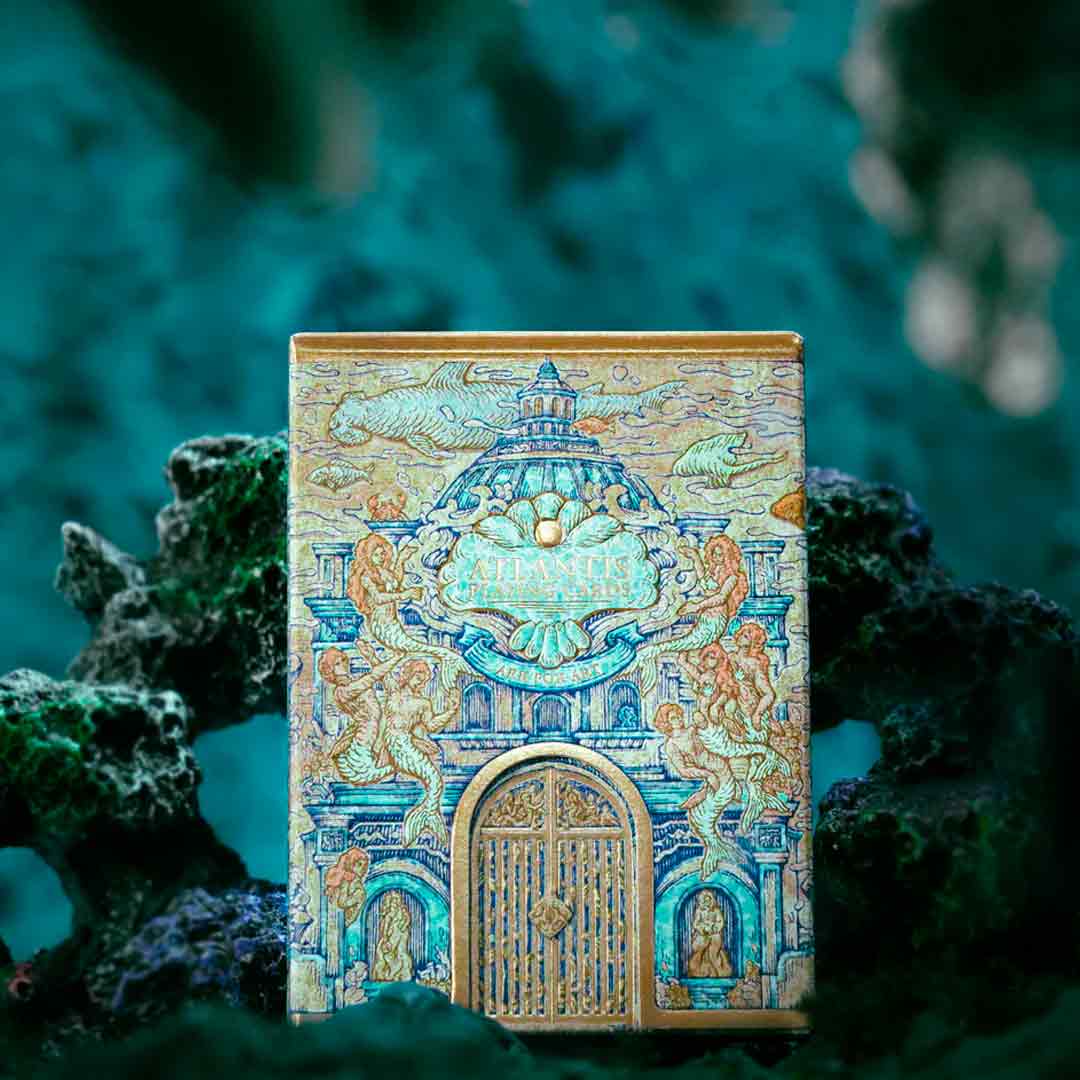 O baralho Atlantis é uma edição artística e inspirada na lenda da cidade perdida de Atlântida, um civilização antiga que segundo a lenda, a cidade afundou no mar.