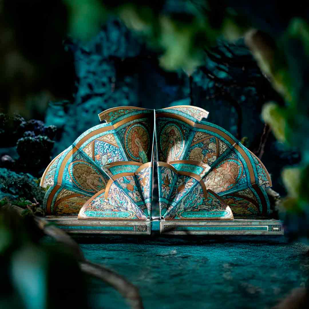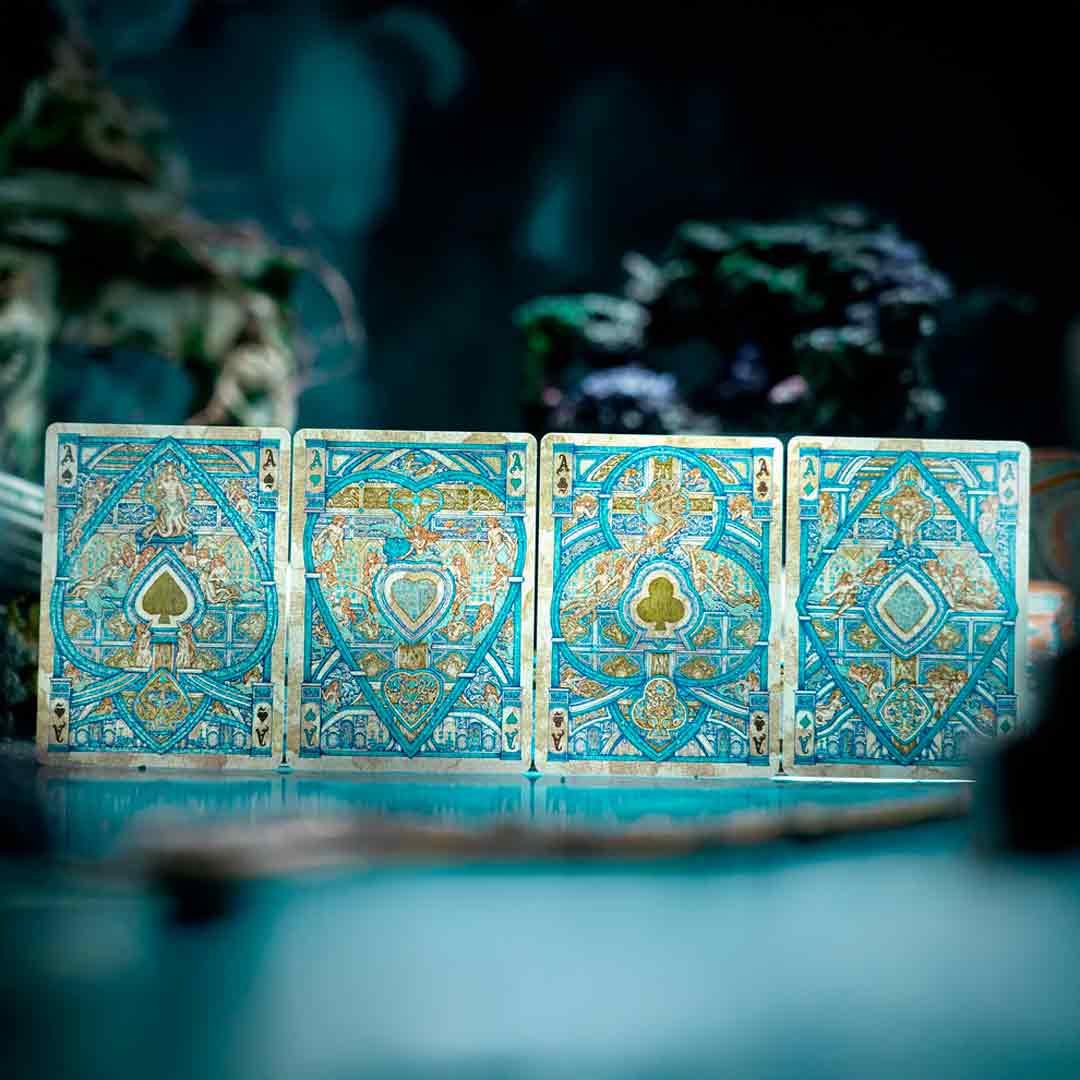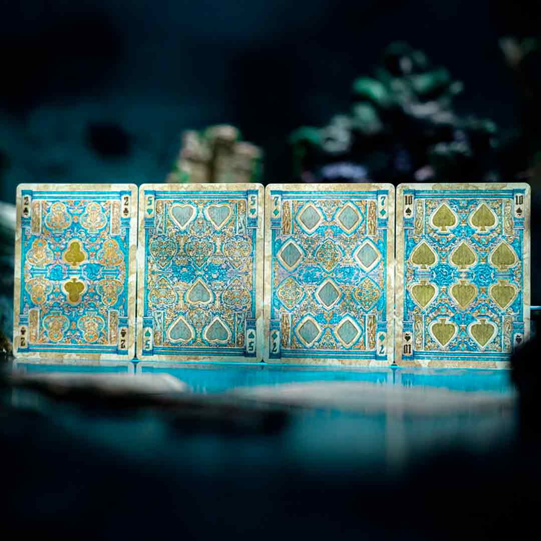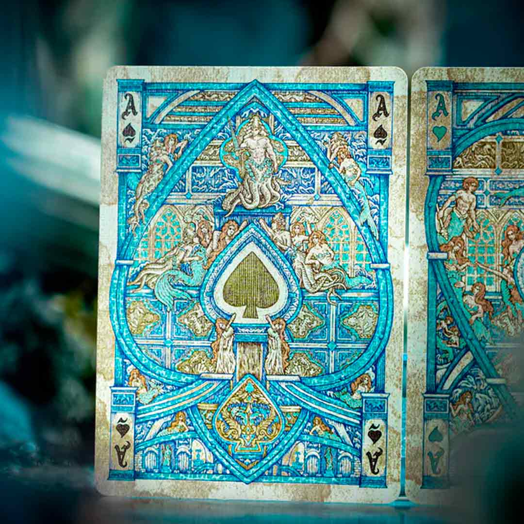 O baralho Atlantis é uma edição artística e inspirada na lenda da cidade perdida de Atlântida, um civilização antiga que segundo a lenda, a cidade afundou no mar.