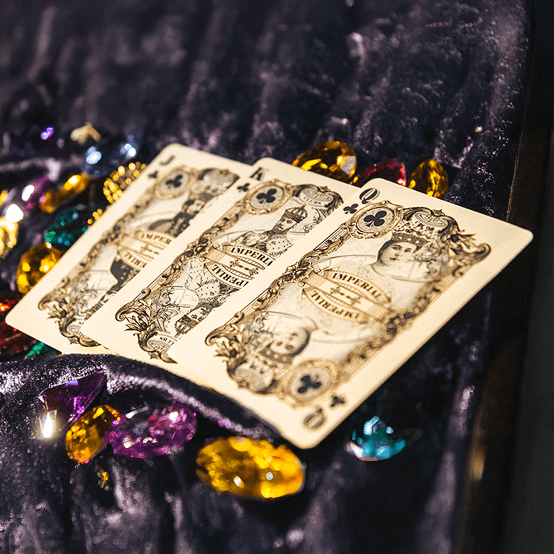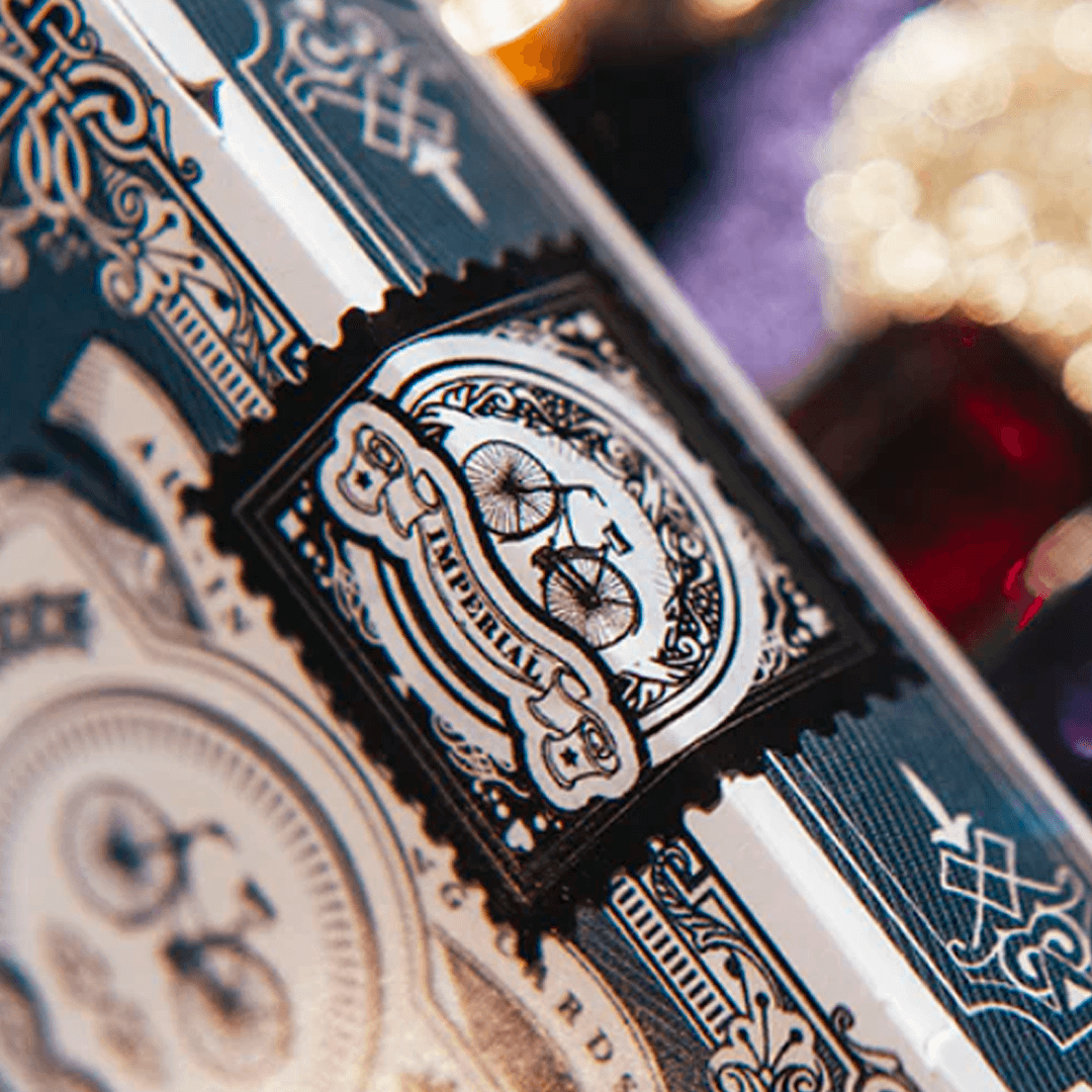 O Baralho Imperial da Bicycle possui uma arte única com desenhos vintage em todo o baralho.