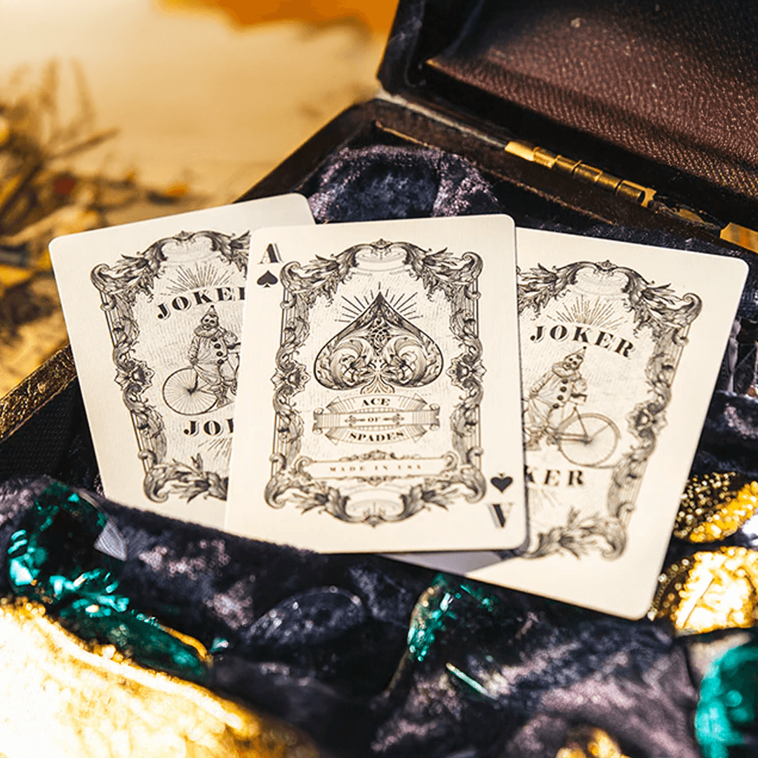 Design Premium e vintage deste baralho será um grande destaque da sua coleção. Adequado para qualquer jogo, cardistry e mágica, ou até mesmo como peça decorativa em sua casa quando não estiver em uso.