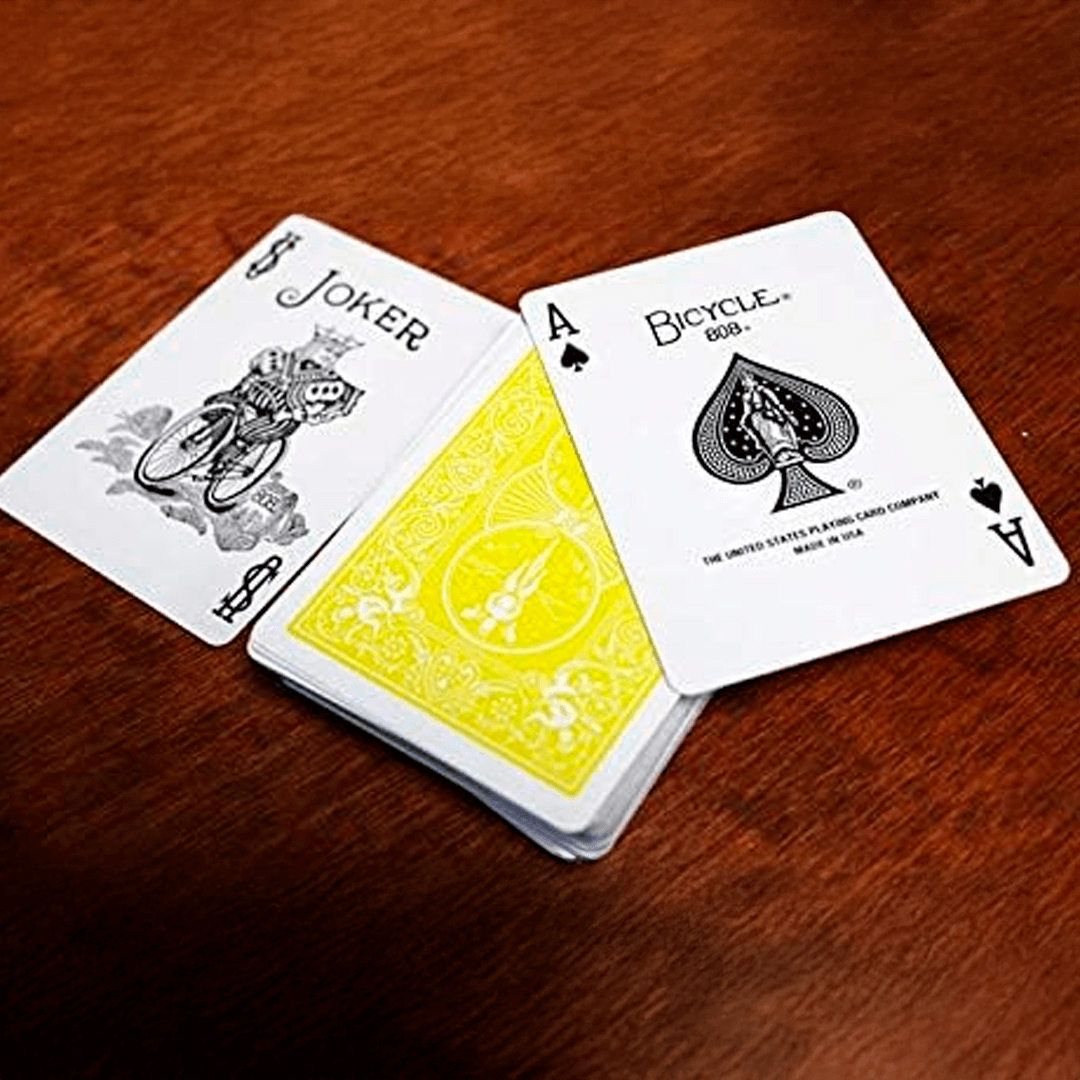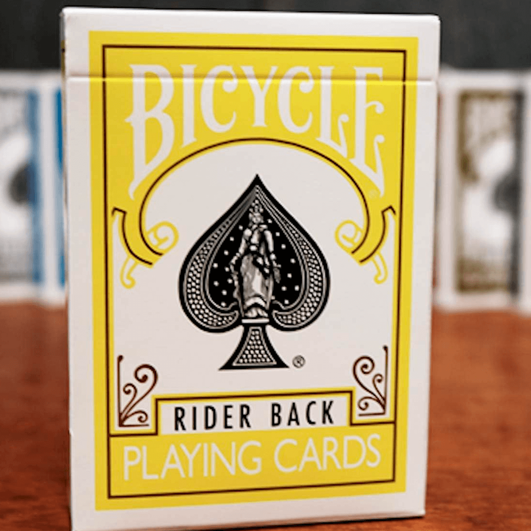 Baralho Bicycle Rider Back Amarelo. Um deck simplesmente icônico no mundo das cartas, um símbolo de qualidade e confiança há mais de 130 anos. Ideal para mágica, jogatina comum e floreios complexos. Original, lacrado e produzidos nos Estados Unidos.