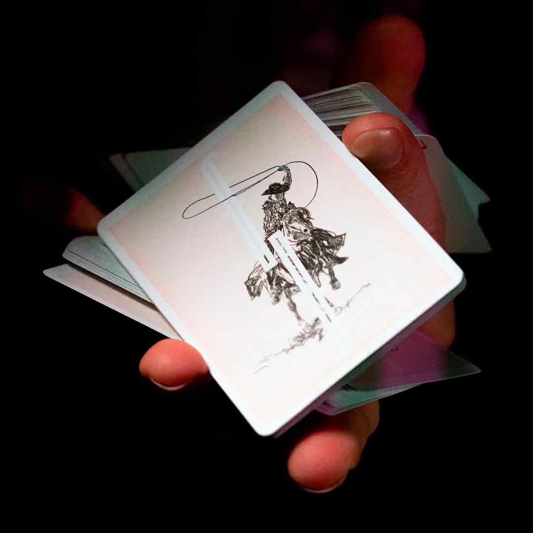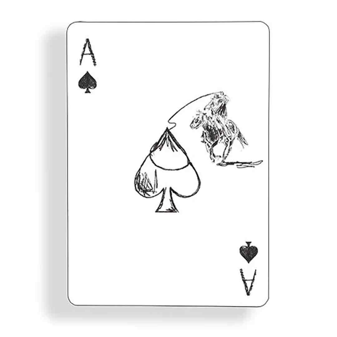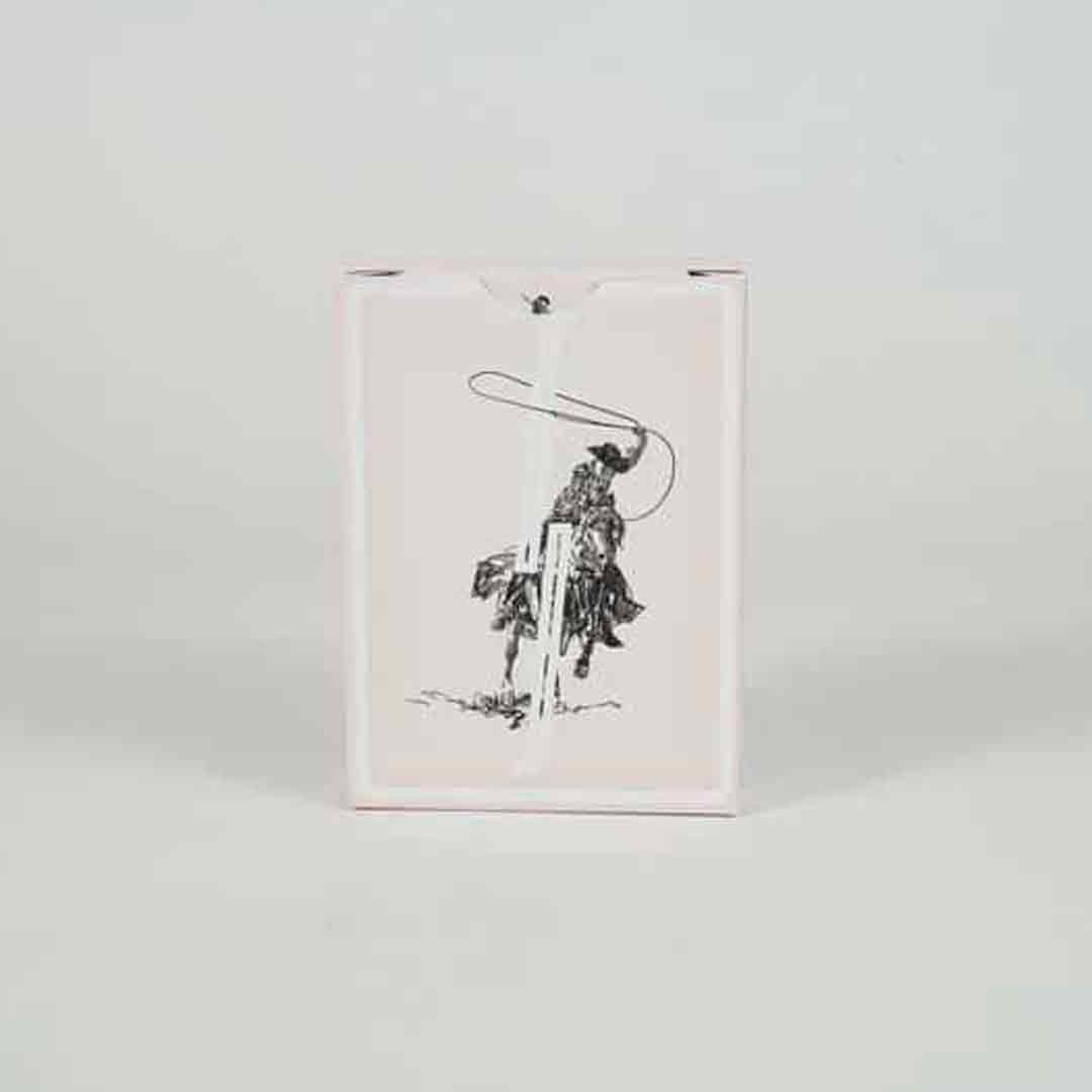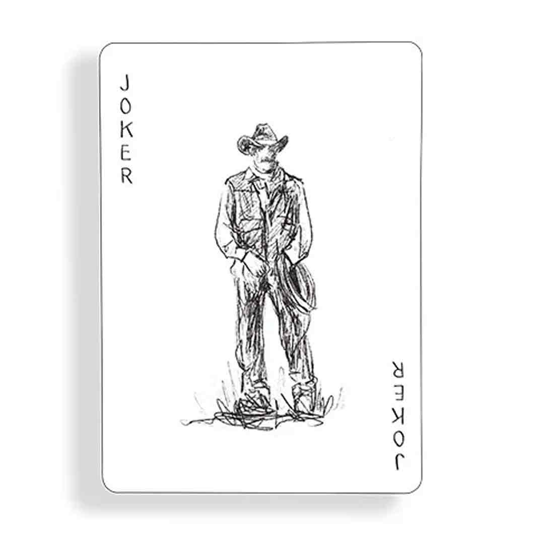 Esse baralho foge do minimalismo clássico da Fontaine e aposta em um estilo mais artístico. As faces trazem desenhos de cowboy e elementos do faroeste, combinando com o icônico dorso de “F” da Fontaine.