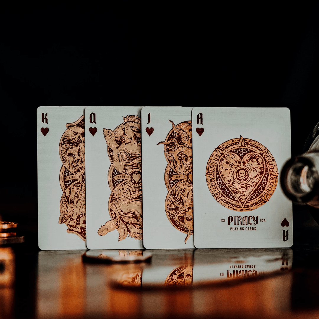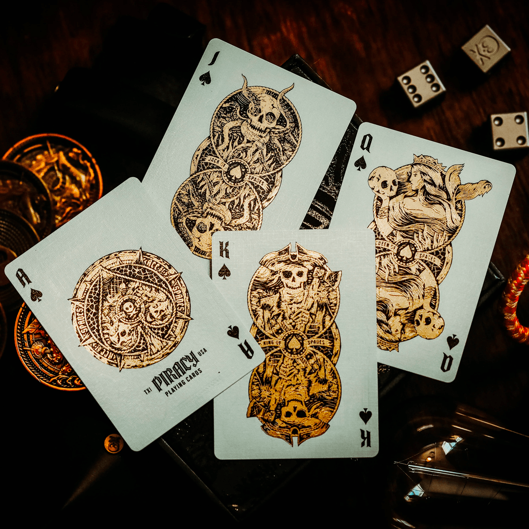 O baralho Piracy foi criado em colaboração com Peter McKinnon, o deck tem uma proposta bem clara: parecer um verdadeiro tesouro nas mãos.
