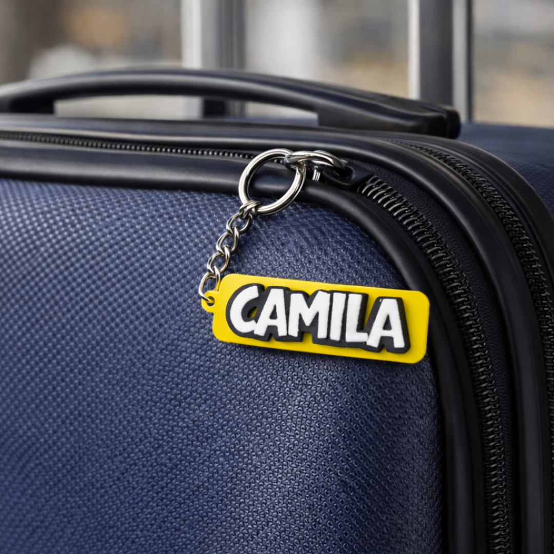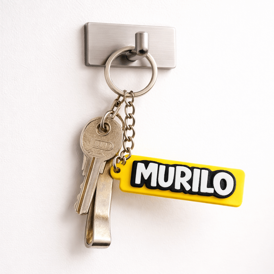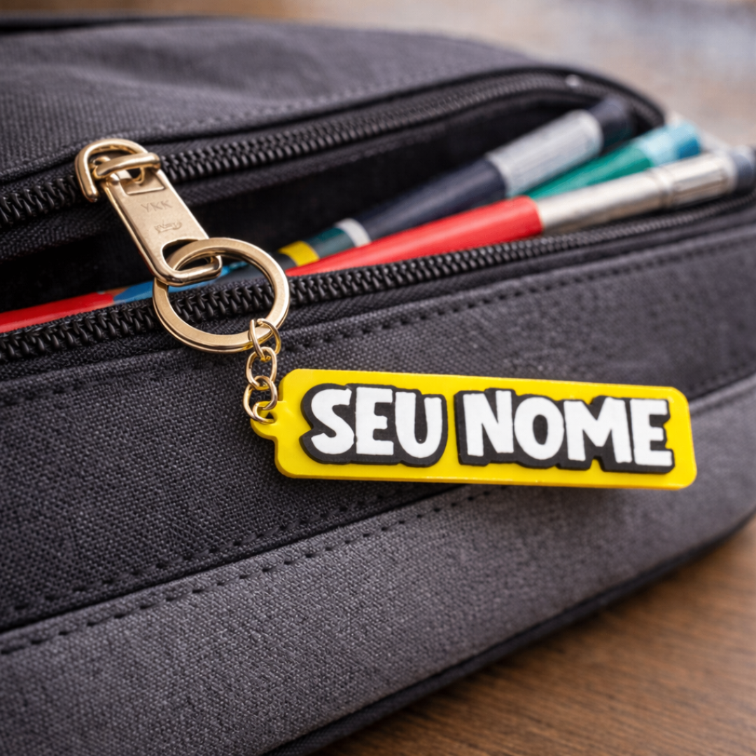 Um chaveiro personalizado com nome é uma mão na roda para identificar objetos como malas, chaves específicas, gavetas, etc.