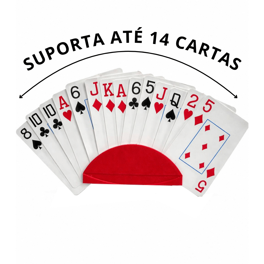 O suporte mantém as cartas organizadas e bem posicionadas, sendo perfeito para jogos como truco, cacheta, canastra, poker, UNO e outros jogos de cartas. Elas seguram muito bem as cartas evitando quedas.