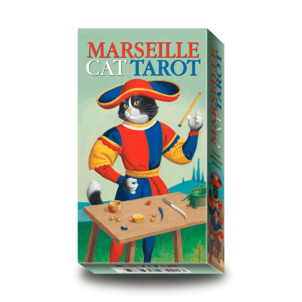 Nesta alegre homenagem ao Tarot de Marselha, as imagens foram redesenhadas e reconstruídas com gatos divertidos, mantendo todos os detalhes das cartas tradicionais.