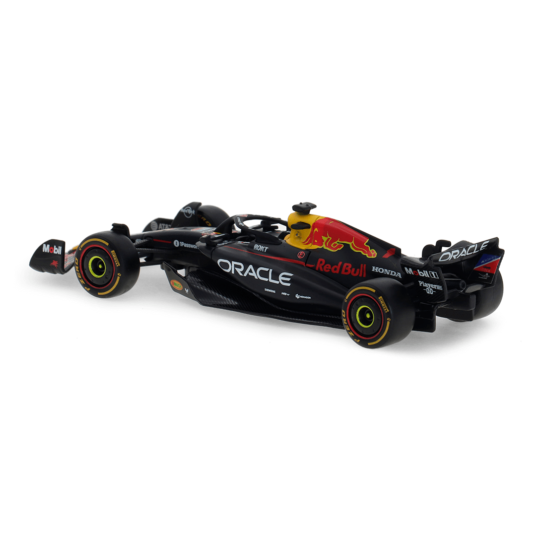 A miniatura 1/43 da Red Bull Racing, carro utilizado por Max Verstappen, reproduz o visual da edição de 2025 da Red Bull, com a pintura azul escuro, característica e detalhes que remetem ao carro real, mantendo um acabamento bem feito e uma qualidade extrema para o tamanho da peça.